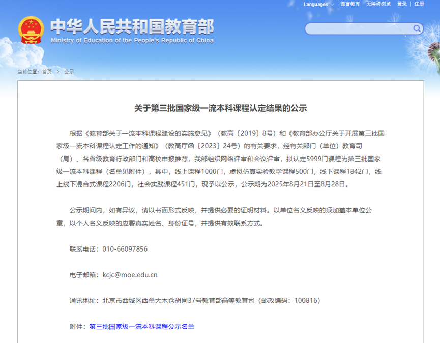 8月21日,教育部公布了《关于第三批国家级一流本科课程认定结果的公示》,我院“工程热力学”课程被认定为“第三批国家级线上线下混合式一流课程”,“人工湿地生态修复技术虚拟仿真实验”课程被认定为“第三批国家级虚拟仿真实验教学一流课程”,标志着我院“动力工程及工程热物理”和“环境科学与工程”两个学科双双实现国家级一流本科课程0到1的突破!